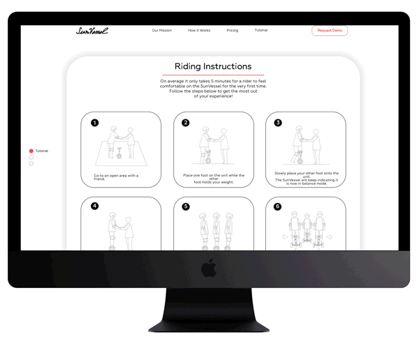 This page includes both a diagram and a video explaining that explains to new users how to ride a sunvessel. The video will have footage of the product in motion which was previously missing.
